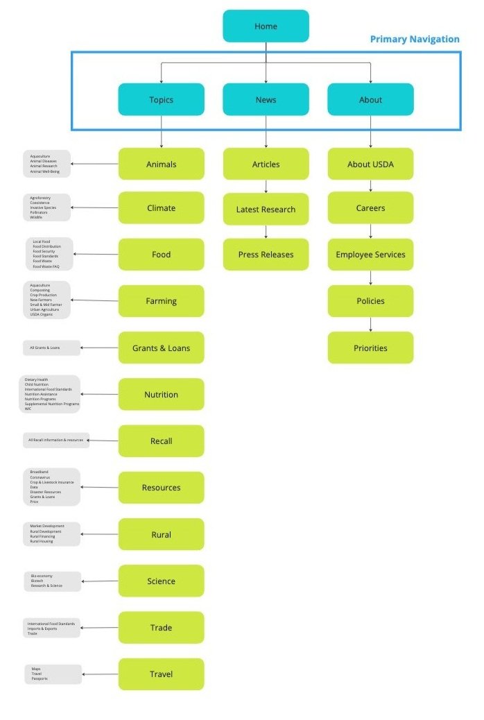 This sprint was a practice in site organization, and government sites are notorious for being an overload of information. I chose the USDA because they have a large offering of grants and loans, but they’re currently scattered all over the website. For my redesign, I took a large overview of the site to simplify and streamline its assistance programs, so users can more easily browse available programs.